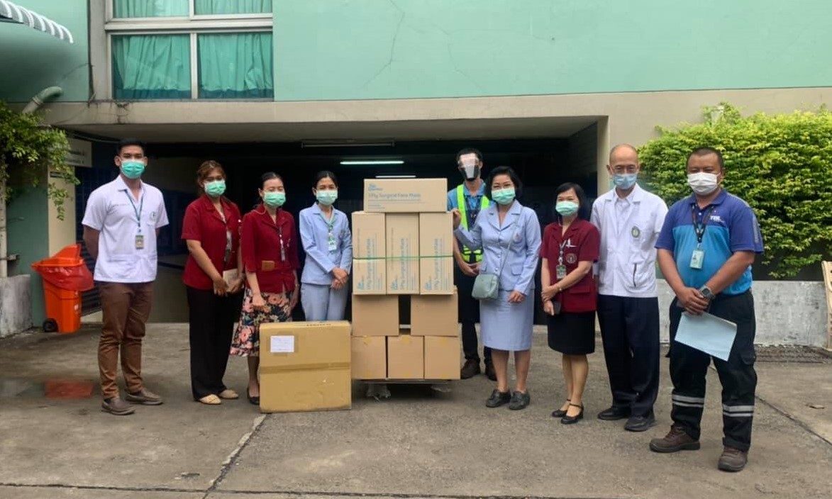 Thai Beverage Public Company Limited and The PARQ donated medical masks and hand sanitizing gel to the 41st Public Health Service Center in Khlong Toey district