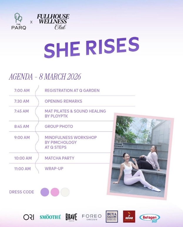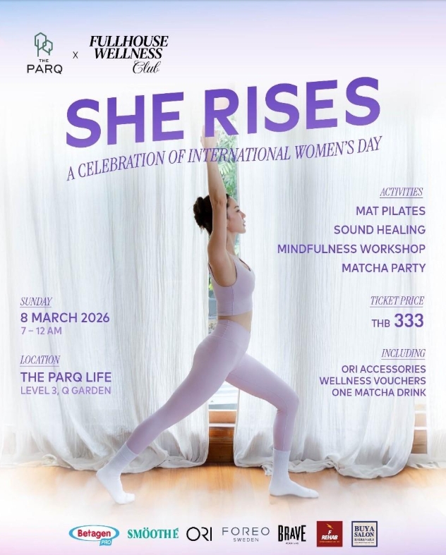 The PARQ และ Fullhouse Wellness Club ชวนคุณมาเฉลิมฉลอง International Women’s Day กับงาน She Rises: A Celebration of International Women’s Day ที่จะพาคุณกลับมาดูแลสมดุลของร่างกายและจิตใจไปพร้อมกัน บนสวนลอยฟ้า ท่ามกลางบรรยากาศยามเช้าที่สดใส กับกิจกรรมเพื่อสุขภาพหลากหลาย อาทิ